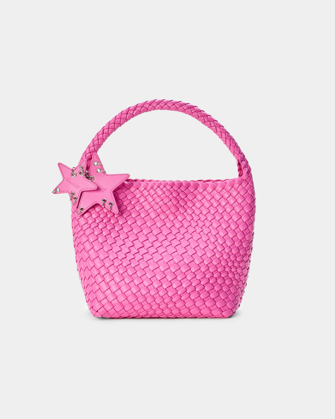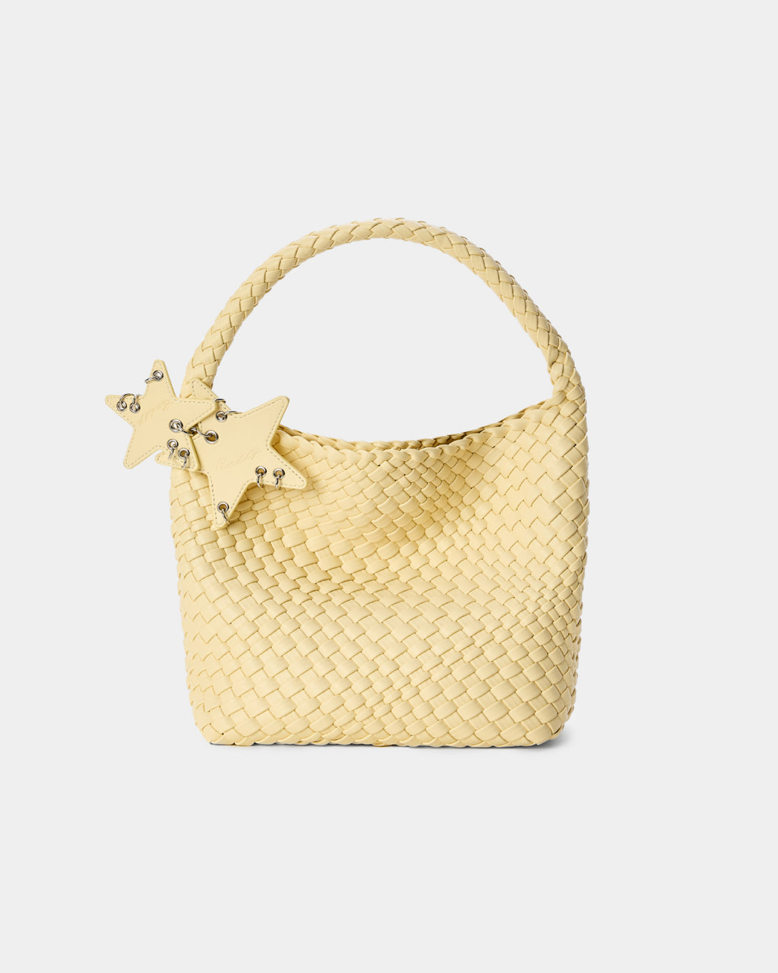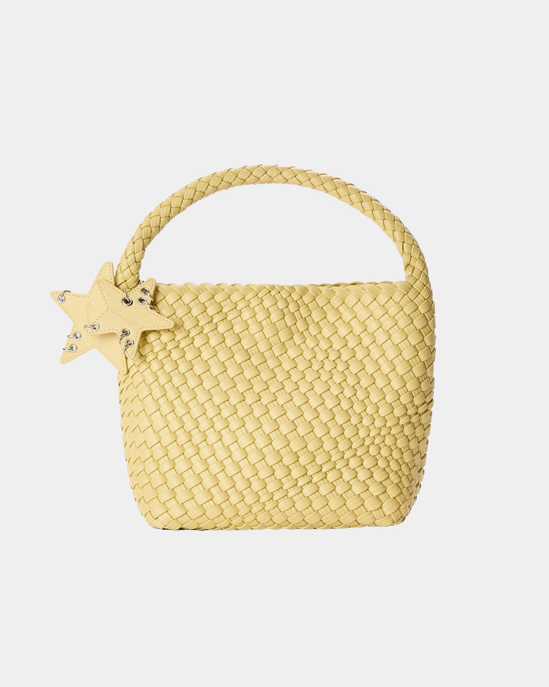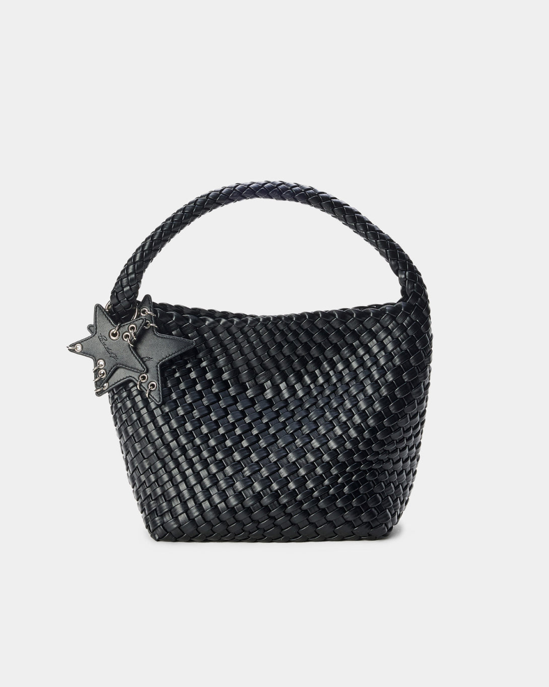 Small classic woven tote bag with braided handles, handcrafted by skilled artisans.