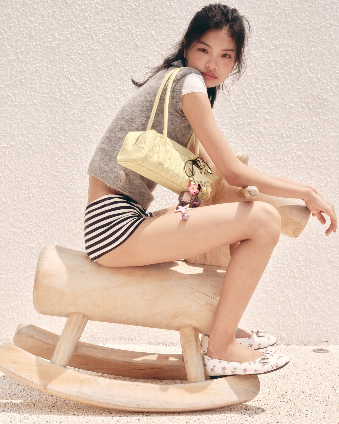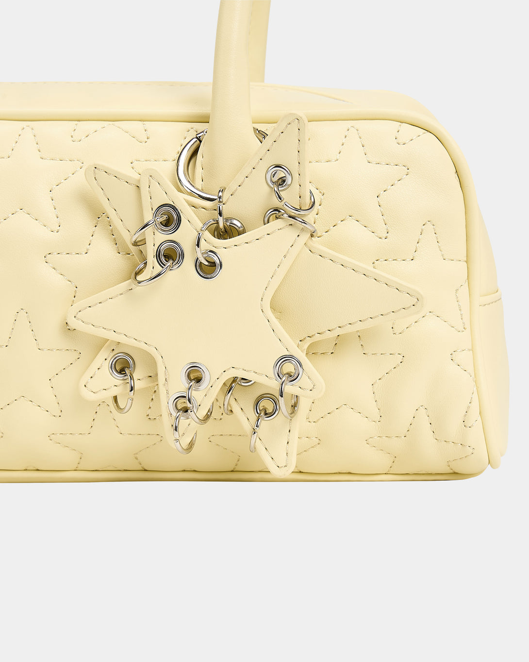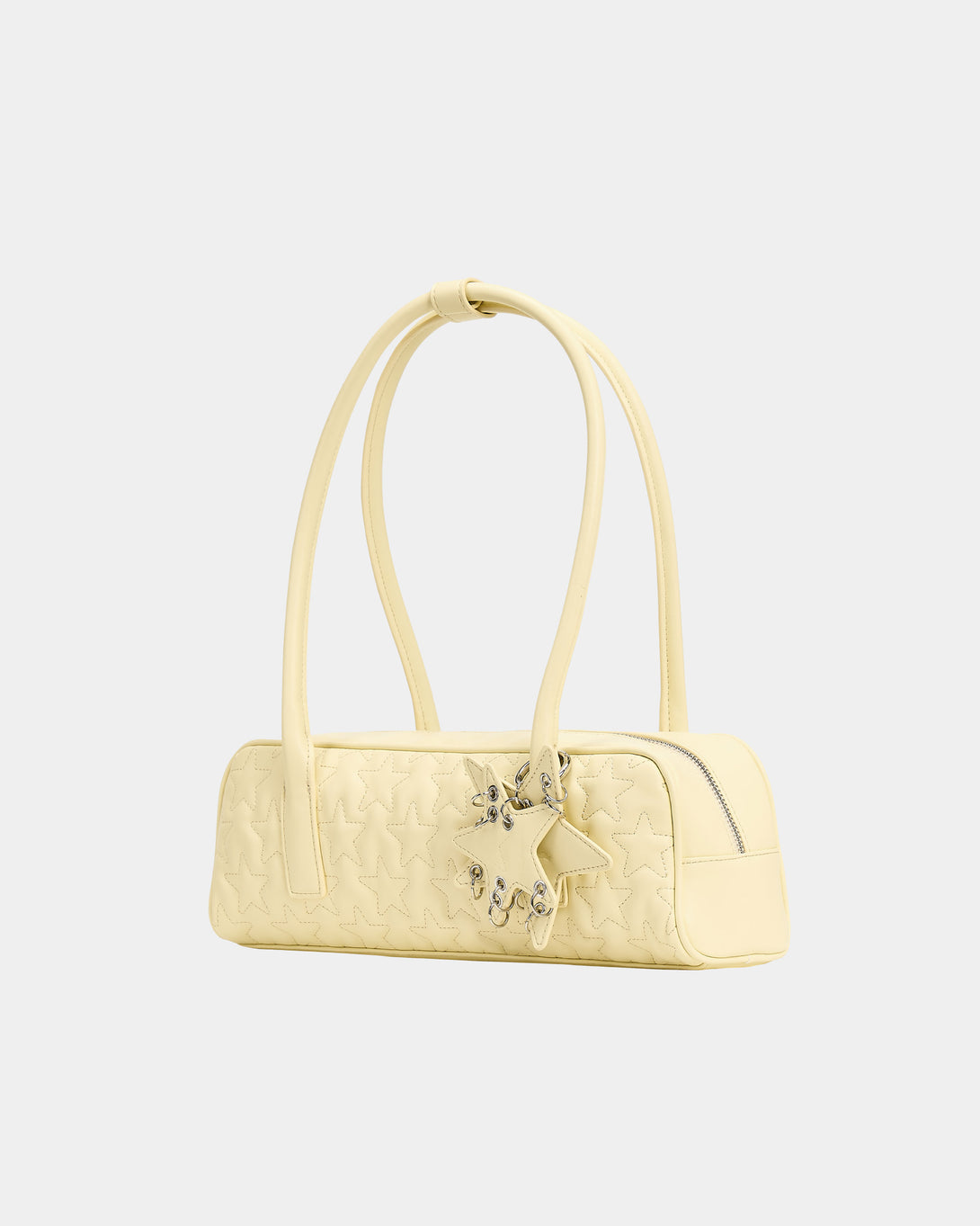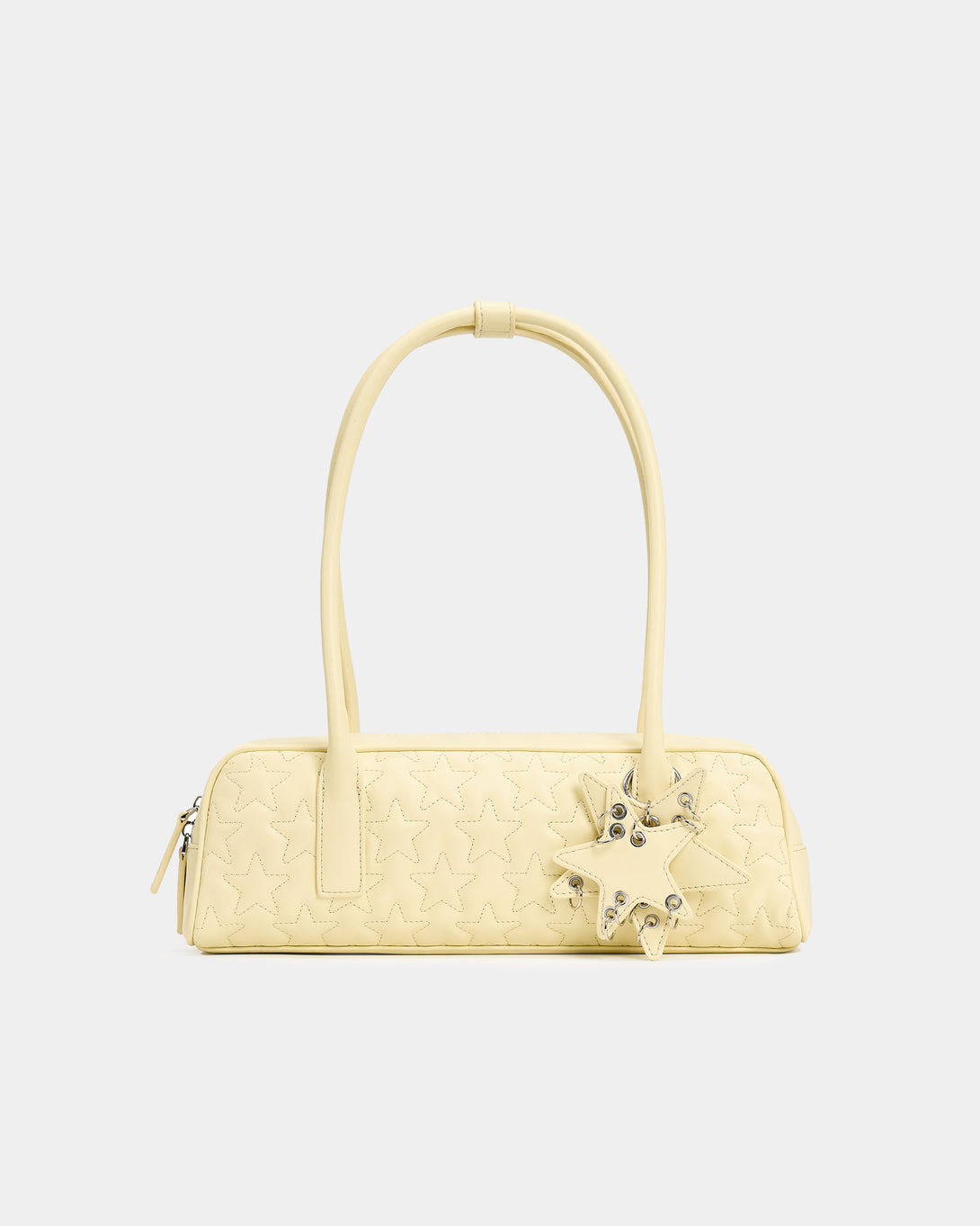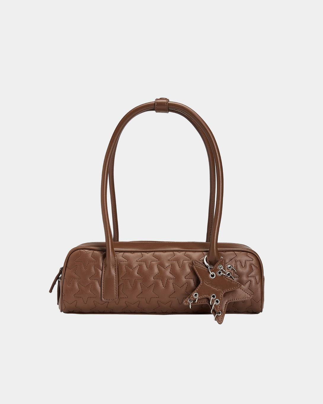 Medium star baguette bag, featuring dimensional star-shaped stitching.